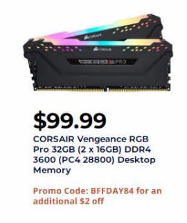 CORSAIR Vengeance RGB Pro 32GB (2 x 16GB) DDR4 3600 (PC4 28800) Desktop Memory $99.99 via coupon BFFDAY84