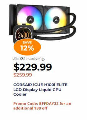 CORSAIR iCUE H100i ELITE LCD Display Liquid CPU Cooler $229.99 via coupon BFFDAY32