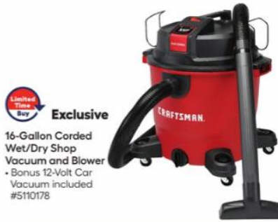 CRAFTSMAN 16-Gallons 6.5-HP Corded Wet/Dry Shop Vacuum