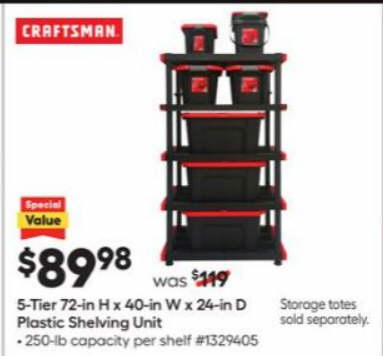 CRAFTSMAN Plastic Heavy Duty 5-Tier Utility Shelving Unit (40-in W x 24-in D x 72-in H)