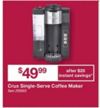 CRUX Single Serve Coffee Maker with Water Tank - Black
