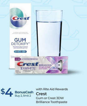 Crest Gum or Crest 3DW Brilliance Toothpaste
