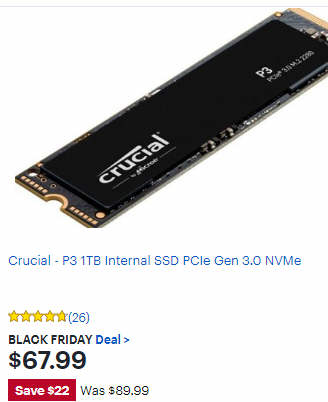 Crucial P3 1TB Internal SSD PCIe Gen 3.0 NVMe