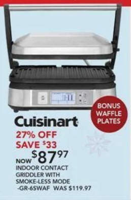 Cuisinart Indoor Contact Griddler with Smoke-Less Mode & Bonus Waffle Plates - Stainless Steel