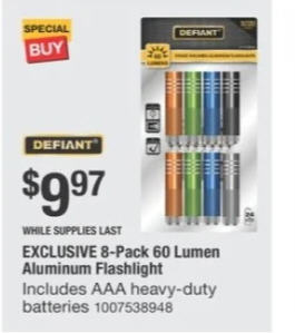 DEFIANT 8-Pack 60 Lumen Aluminum Flashlight