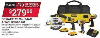 DEWALT 20V MAX Cordless Brushed 4 Tool Combo Kit
