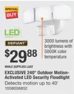Defiant 240-Degree White Motion Actived Integrated LED Outdoor Triple Head Flood Light