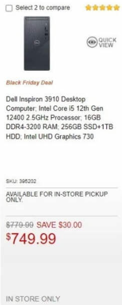 Dell 3910 Desktop Core i5 12th Gen 12400 2.5GHz Processor; 16GB DDR4-3200 RAM; 256GB SSD+1TB HDD