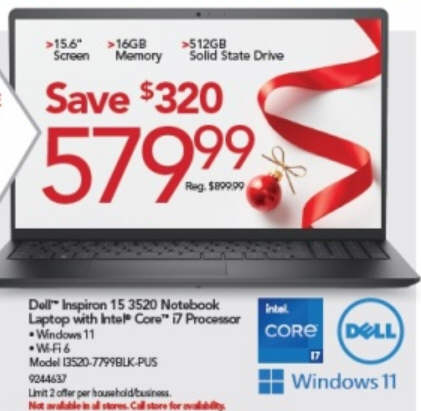 Dell Inspiron 15 3520 Notebook Laptop, 15.6 Screen, Intel Core i7, 16GB Memory, 512GB Solid State Drive, Wi-Fi 6, Windows 11