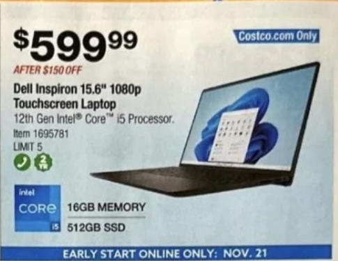 Dell Inspiron 15 Touchscreen Laptop - 12th Gen Intel Core i5-1235U - 1080p - Windows 11, Black