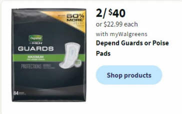 Depend Guards or Poise Pads 2/ $40 or $22.99 each