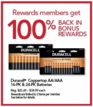 Duracell Coppertop AA/AAA 16-PK & 24-PK Batteries: Rewards Members Get 100% Back in Bonus Rewards
