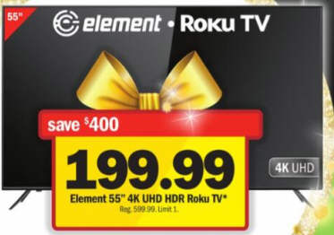 Element 55" 4K UHD HDR Roku TV