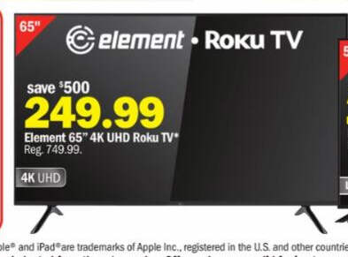 Element 65" 4K UHD Roku TV