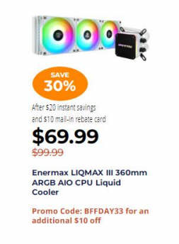 Enermax LIQMAX III 360mm ARGB AIO CPU Liquid Cooler $69.99 via coupon BFFDAY33