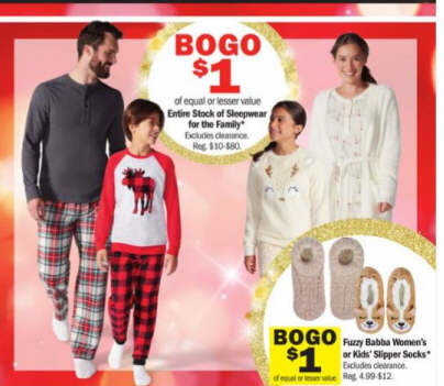 Entire Stock of Sleepwear for the Family: BOGO of equal or lesser value $1