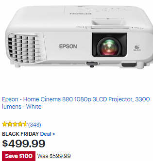 Epson - Home Cinema 880 1080p 3LCD Projector, 3300 lumens - White