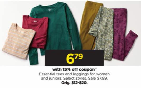 Essential tees and leggings for women and juniors