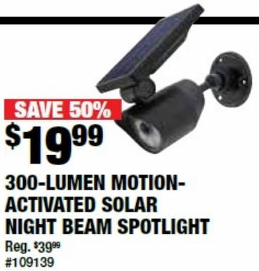 FARPOINT Motion and Light Sensor Activated Solar Night Beam Spotlight 300 Lumens, Black, Model# WMSL80006B