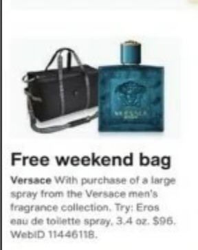Free Weekend Bag Versace With Purchase Of A Large Spray