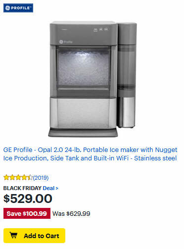 GE Profile - Opal 2.0 24-lb. Portable Ice maker with Nugget Ice Production, Side Tank and Built-in WiFi - Stainless steel