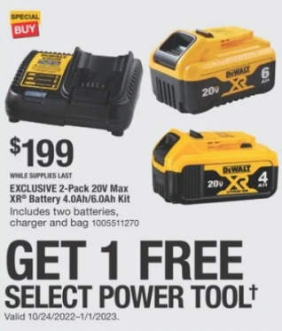 GET 1 FREE SELECT POWER TOOL.EXCLUSIVE 2-Pack 20V Max XR Batter 4.0Ah/6.0Ah Kit.