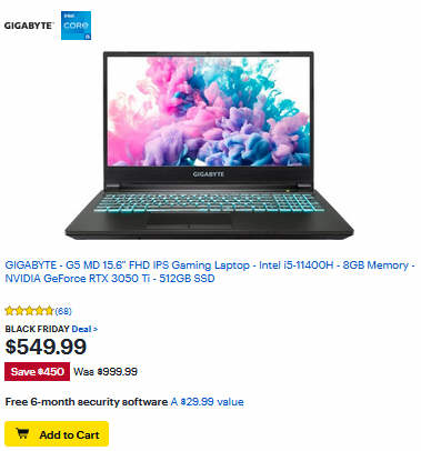 GIGABYTE - G5 MD 15.6" FHD IPS Gaming Laptop - Intel i5-11400H - 8GB Memory - NVIDIA GeForce RTX 3050 Ti - 512GB SSD