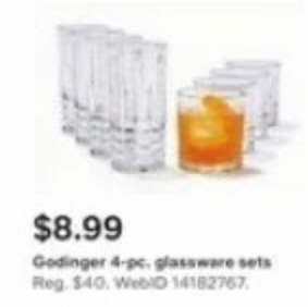 GODINGER Cut Crystal 4-Piece Glassware Sets Collection