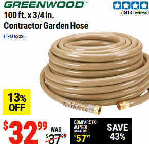 GREENWOOD 100 ft. x 3/4 in. Contractor Garden Hose