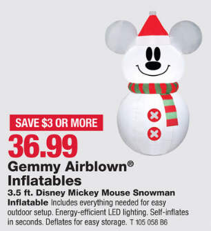 Gemmy Airblown Inflatables 3.5 ft. Disney Mickey Mouse Snowman Inflatable
