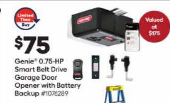 Genie 0.75-HP Smart Belt Drive Garage Door Opener with Battery Backup