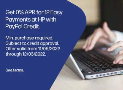 Get 0% APR for 12 Easy Payments at HP with PayPal Credit