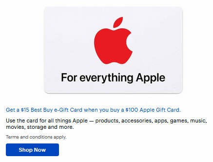 Get a $15 Best Buy e-Gift Card when you buy a $100 Apple Gift Card.