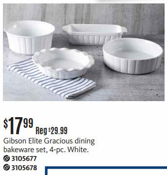 Gibson Elite Gracio Dining Bakeware Set, 4-pc. White