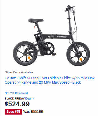 GoTrax - Shift S1 Step-Over Foldable Ebike w/ 15 mile Max Operating Range and 20 MPH Max Speed - Black