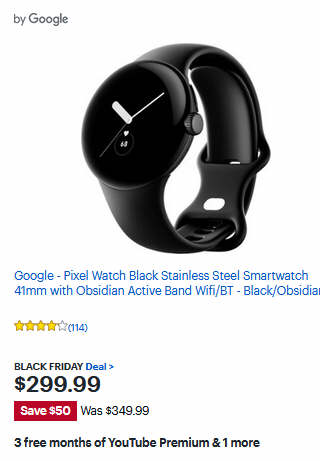 Google - Pixel Watch Black Stainless Steel Smartwatch 41mm with Obsidian Active Band Wifi/BT - Black/Obsidian