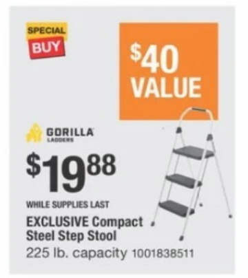 Gorilla Ladders 3-Step Compact Steel Step Stool with 225 lb. Load Capacity Type II Duty Rating