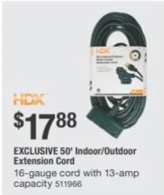 HDX 50' Indoor/Outdoor Extension Cord