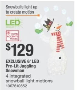 HOME ACCENTS HOLIDAY 6' LED Pre-Lit Juggling Snowman