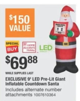 HOME ACCENTS HOLIDAY 9' LED Pre-Lit Giant Inflatable Countdown Santa