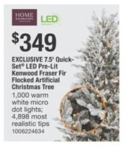 HOME DECORATORS COLLECTION 7.5' Quick- Set LED Pre-Lit Kenwood Fraser Fir Flocked Artificial Christmas Tree