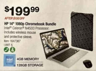 HP 14" Chromebook Laptop Bundle - Intel Celeron - 1080p - Bonus Sleeve & Wireless Mouse