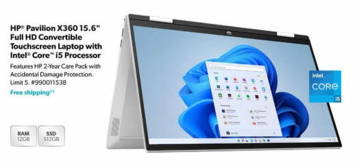 HP - 15.6" Pavilion x360 Convertible FHD Laptop - 12th Generation Intel Core i5-1235U - 12GB RAM - 512GB SSD - Backlit Keyboard - 2 Year Warranty Care Pack - Windows 11