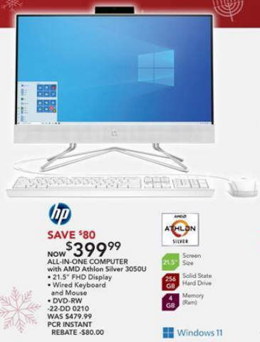 HP 21.5" All-in-one with AMD Athlon Silver 3050U, 4GB RAM, 256GB SSD, Win 11