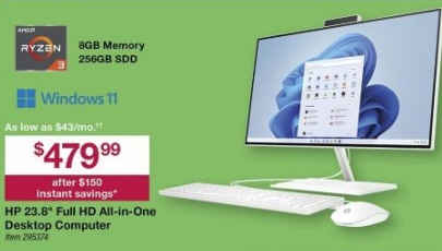 HP 23.8" All-in-One Desktop PC, AMD Ryzen 3 5425U Processor, 8GB Memory, 256GB SSD