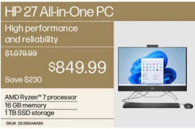 HP All-in-One 27-cb1177z: AMD Ryzen 7 processor, 16 GB memory; 1 TB SSD storage