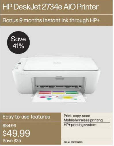 HP Deskjet 2734e All-in-One Printer w/ bonus 6 months Instant Ink through HP+