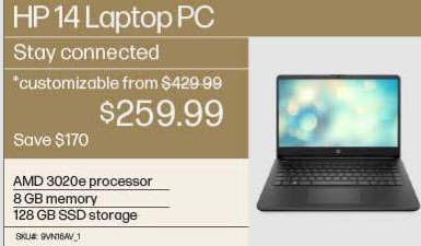 HP Laptop - 14z-fq000: AMD 3020e, 8 GB DDR4, 128 GB M.2 SSD