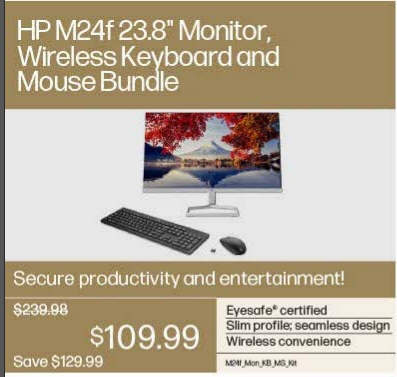 HP M24f 23.8" Monitor, Wireless Keyboard and Mouse Bundle