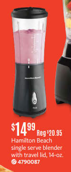 Hamilton Beach Single Serve Blender With Travel Lid